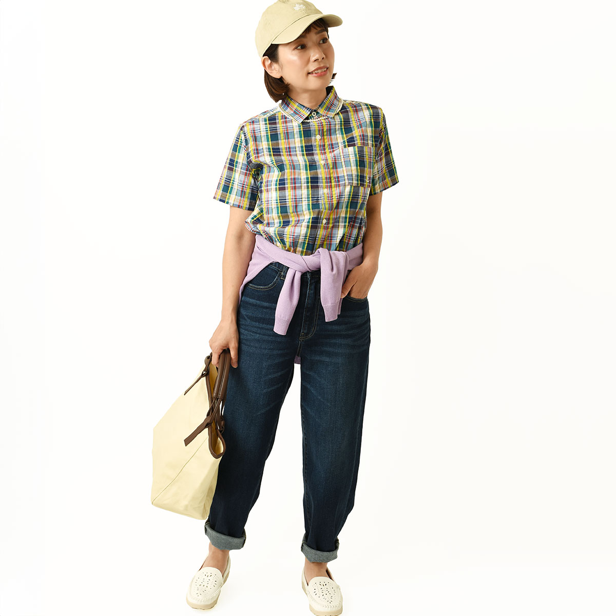 カジュアルな印象のチェック柄もシャツならきちんと感コーデに!!