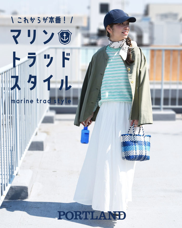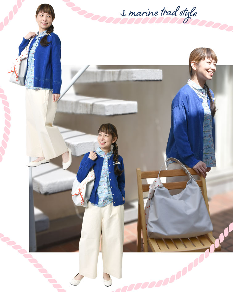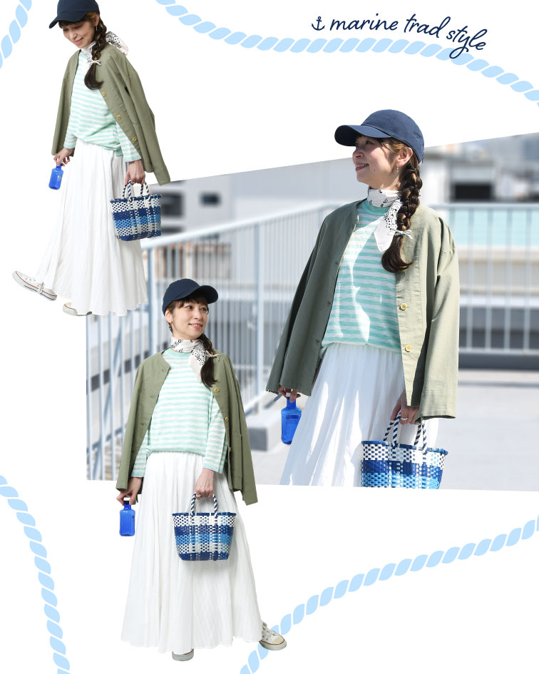 ブラウスでトラッド感を演出、白いパンツで爽やかなマリンスタイルが完成!!